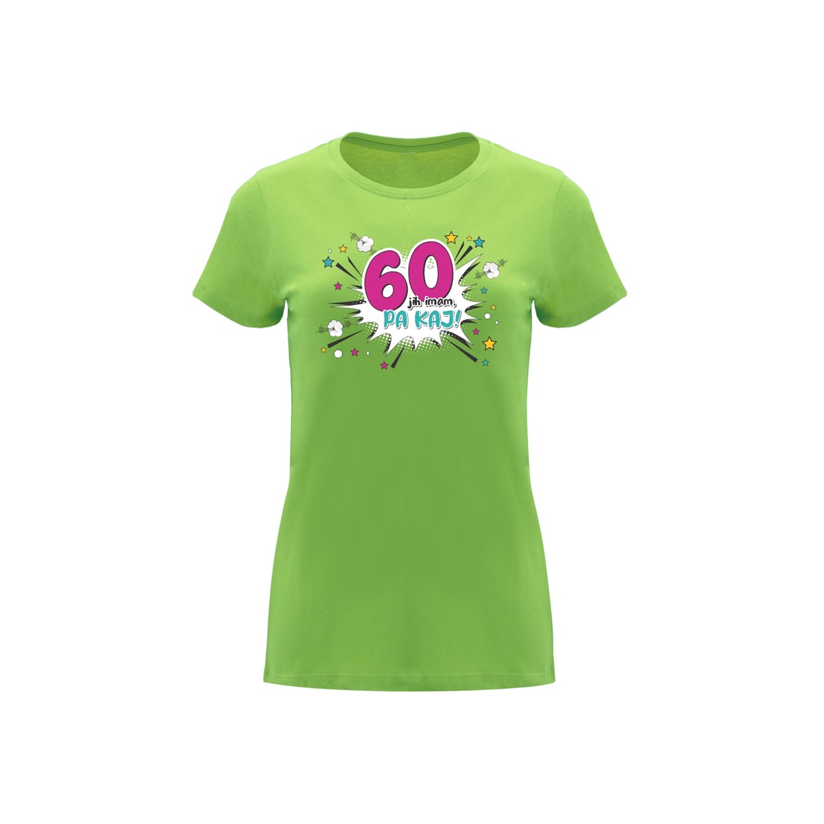 Ženska T majica za 60-ti rojstni dan, oprijeta, kratek rokav, 100% česan bombaž, z natisnjenim motivom.