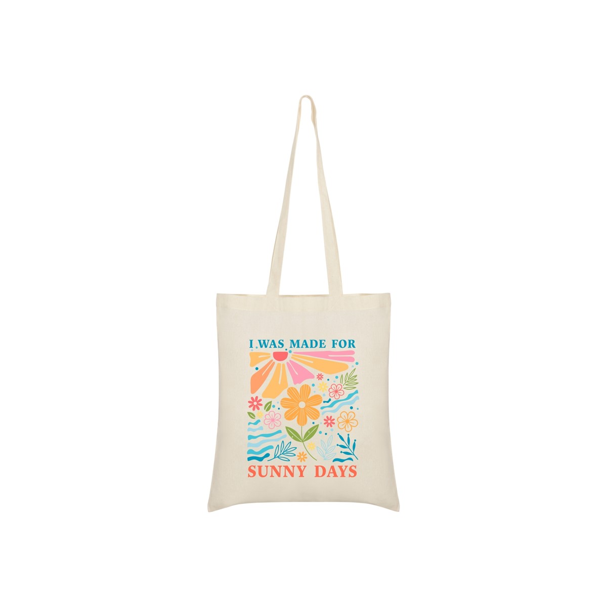 Vrečka I was made for sunny days je kot poletna energija na rami – idealna za sprehode, plažo in vsak dan, ko želiš več barv in dobre volje ☀ 🌼🌈👜